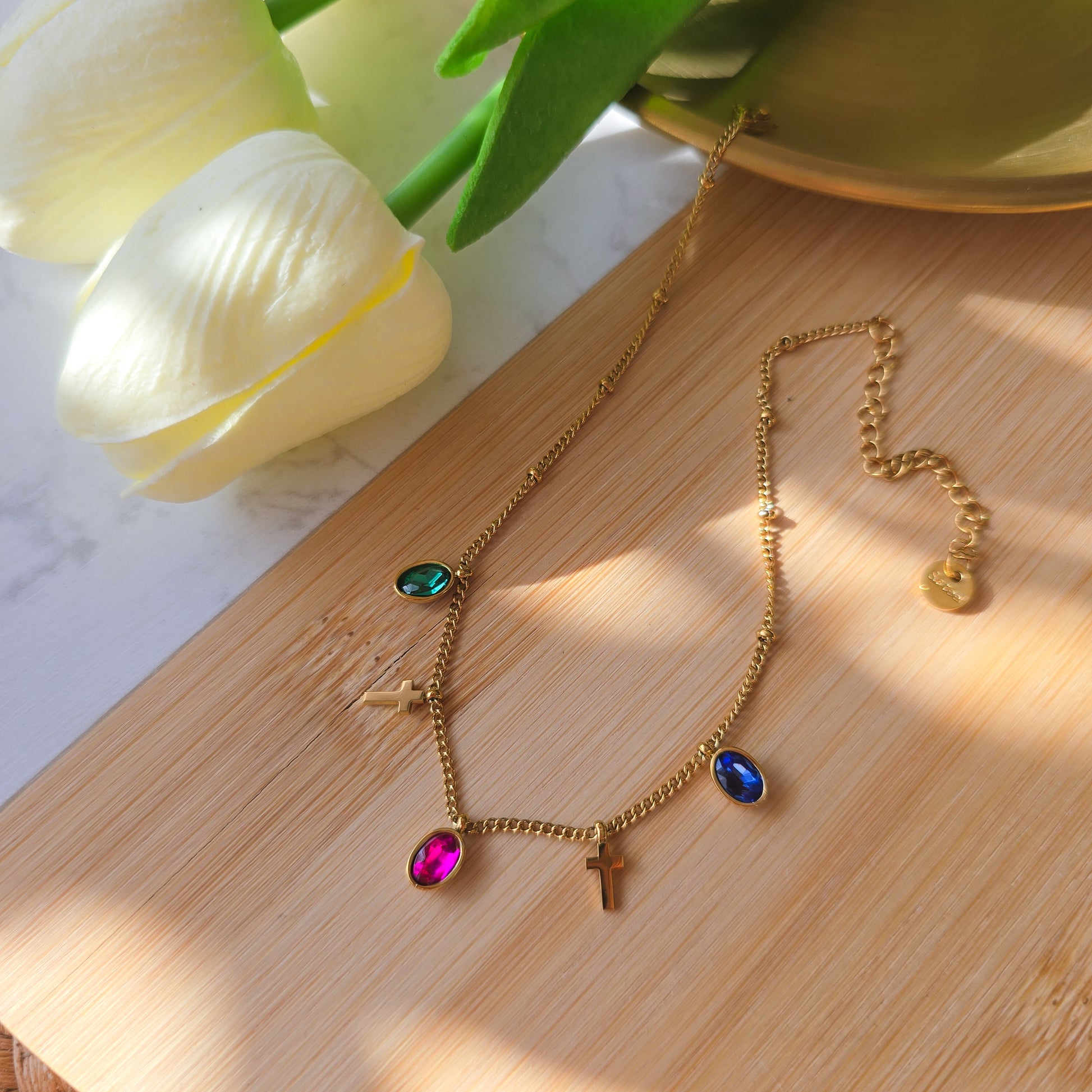 Rhinestone and cross stainless steel anklet 21 - 5 cm