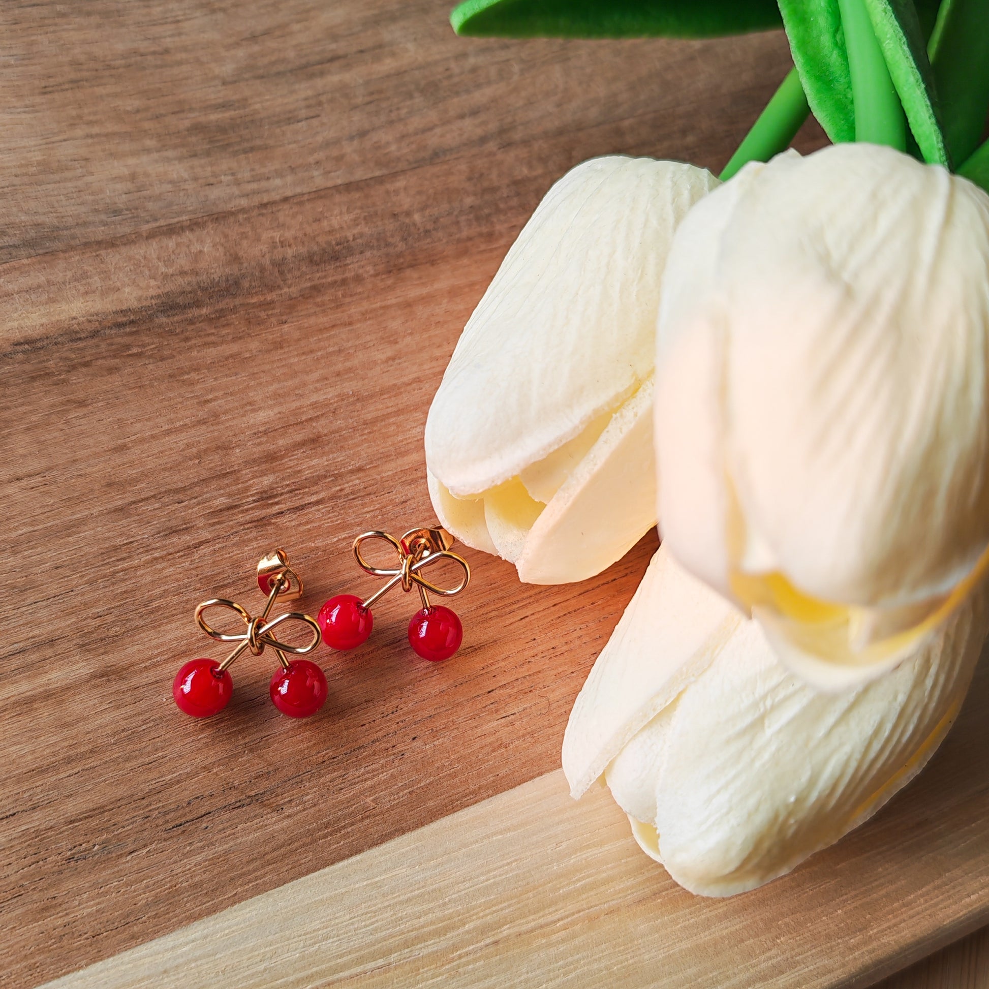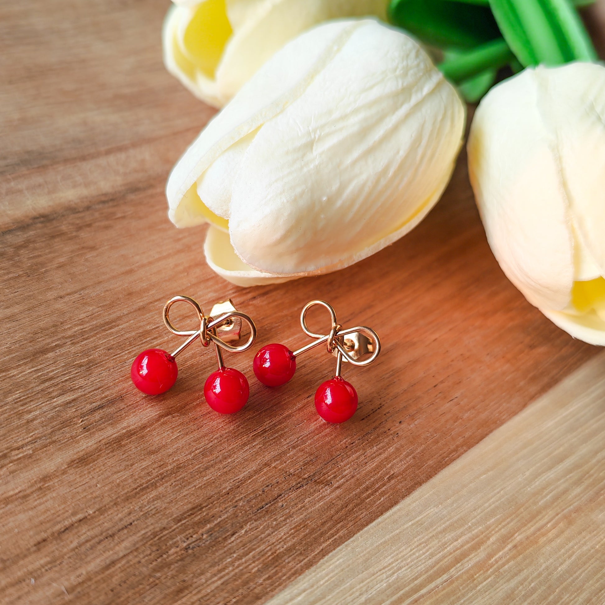 Cherry bow earrings