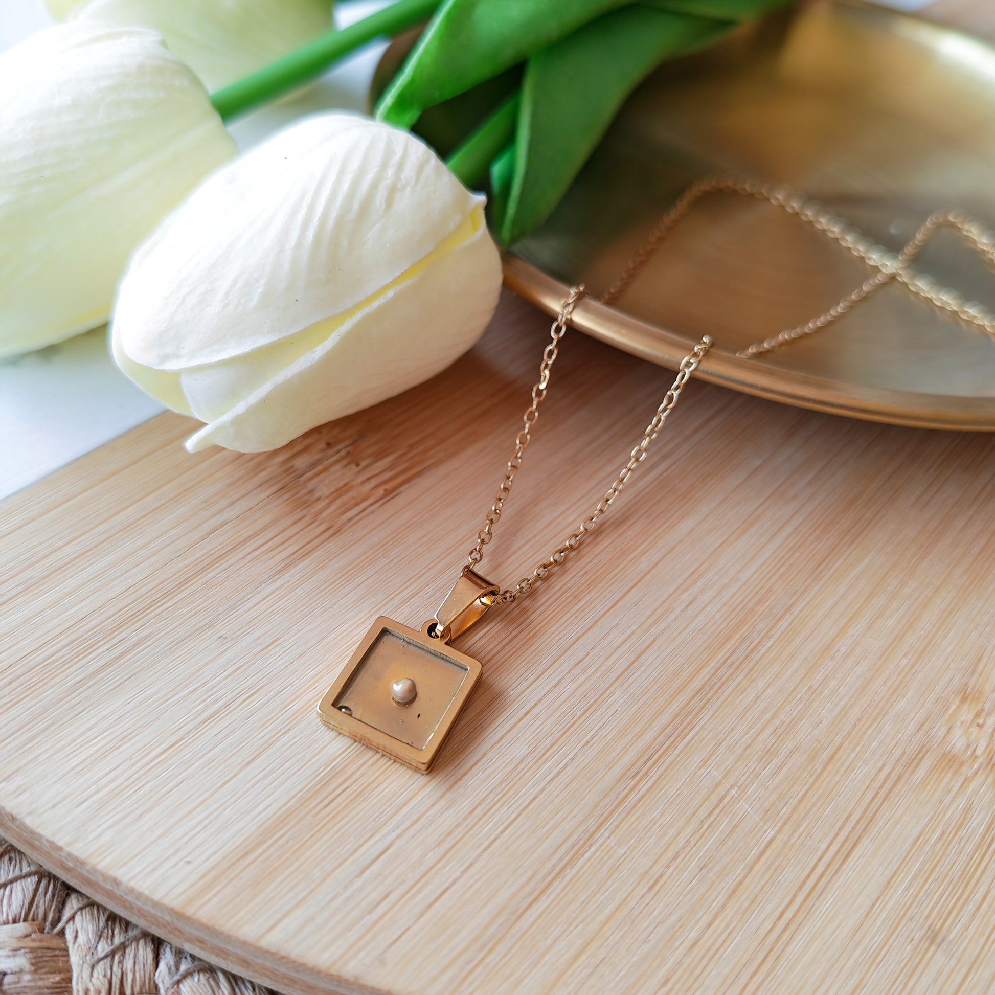 Handmade 10mm square pendant mustard seed
