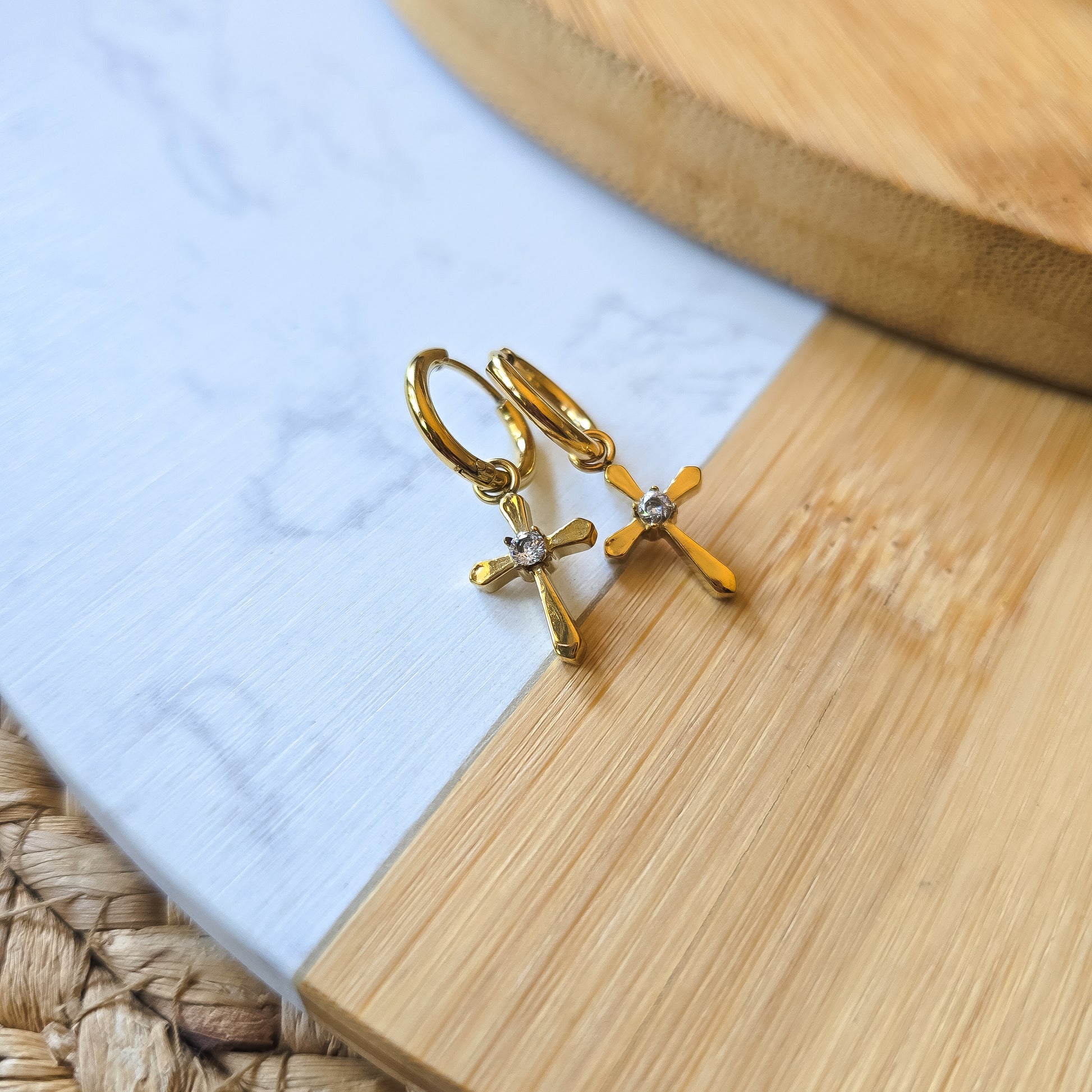 Stainless steel cross hoop 10mm earrings