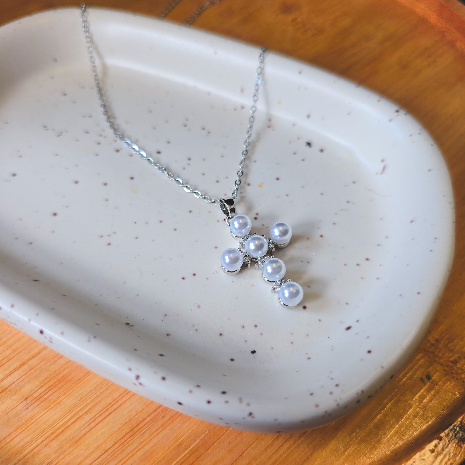 Faux pearl silver necklace