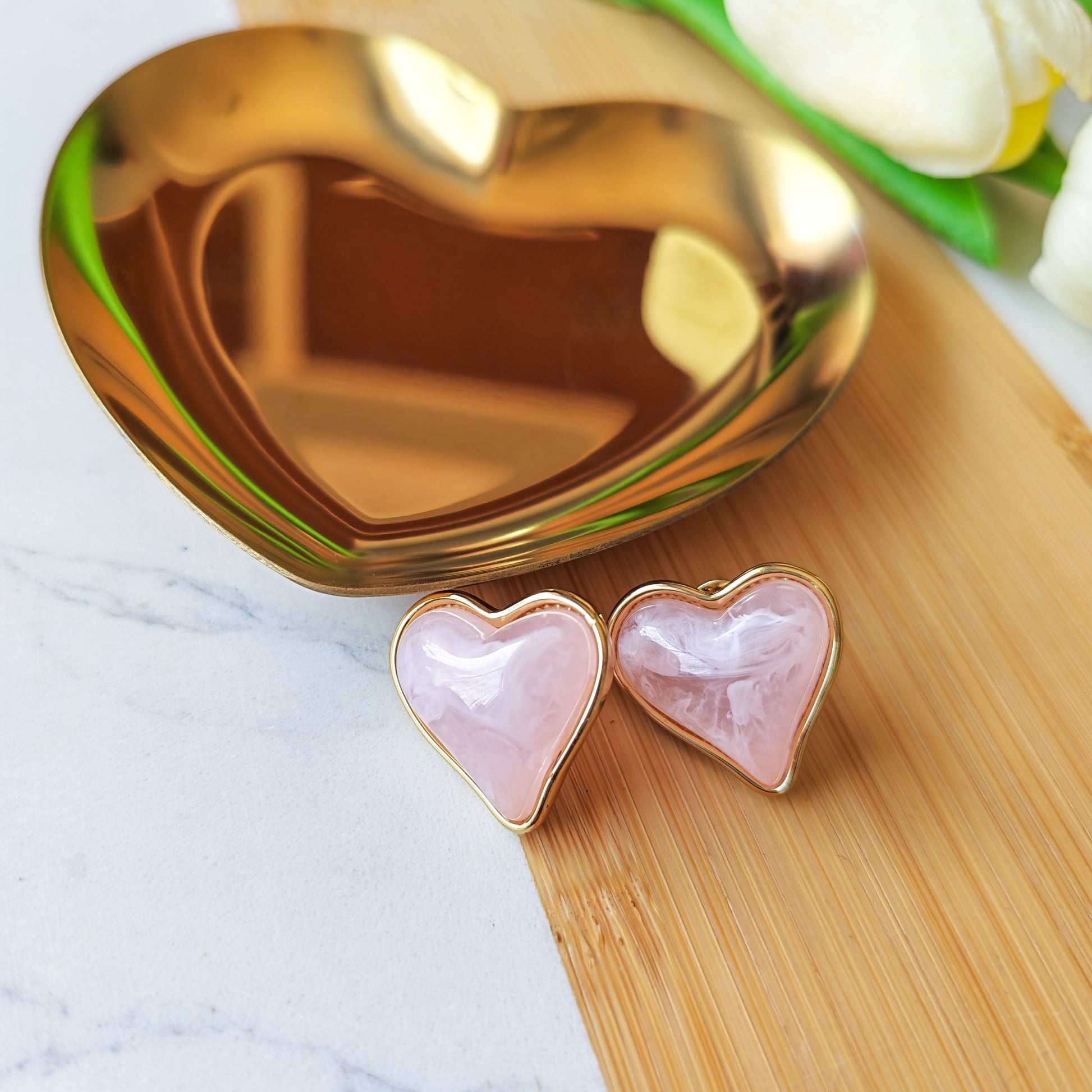 Stainless steel 20mm heart earrings with Resin embedded in light pink