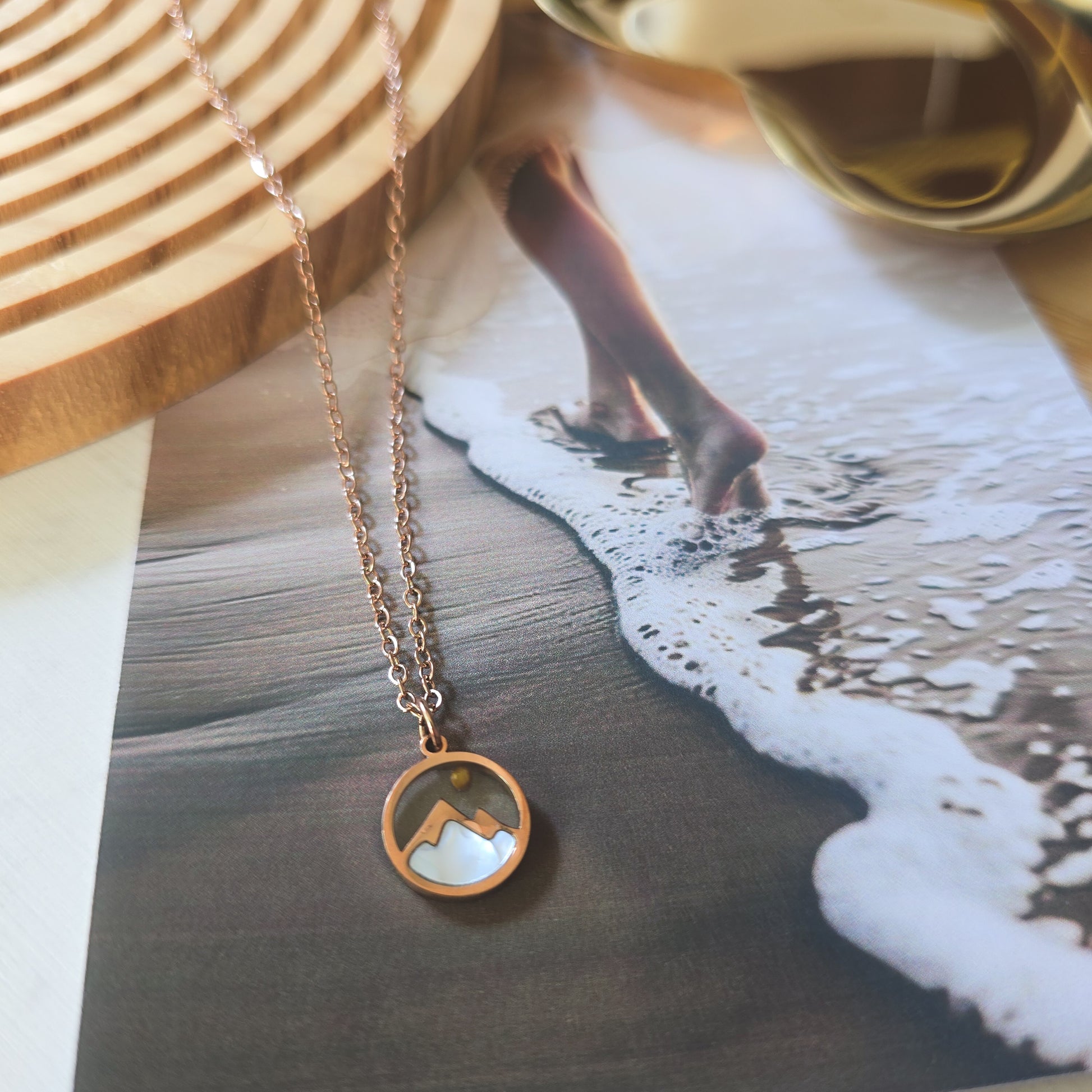 - MATERIAL : Stainless steel, the mountain inlaid with shells, a mustard seed set in epoxy resin,durable and non-yellowing.