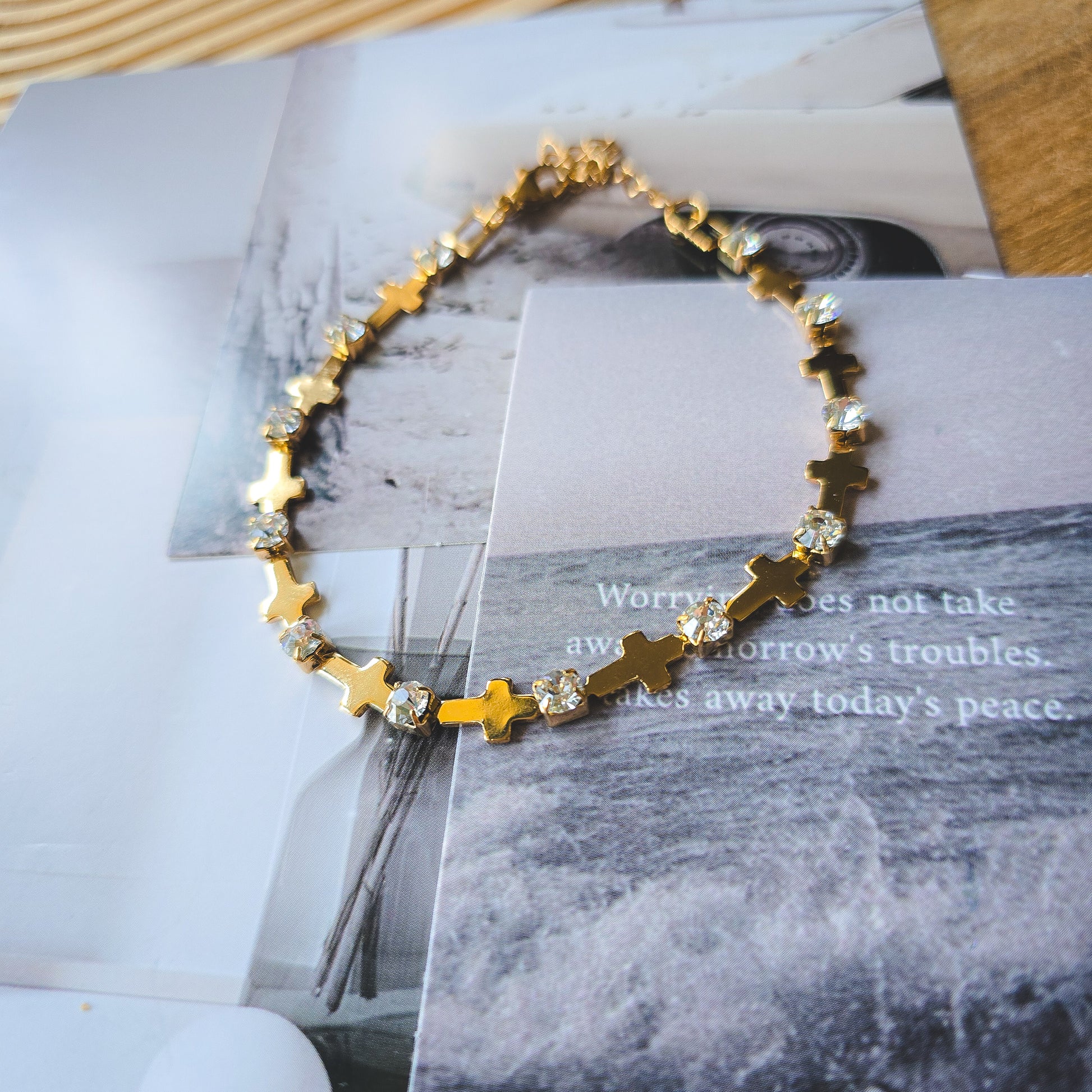 Rhinestone cross bracelet